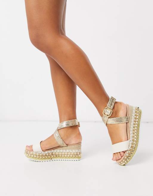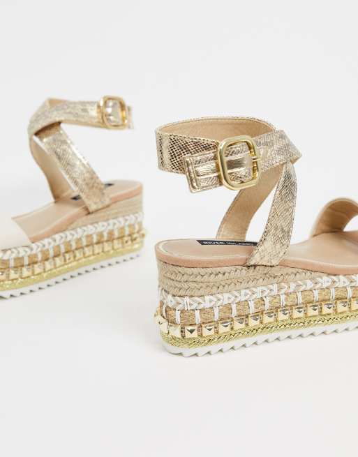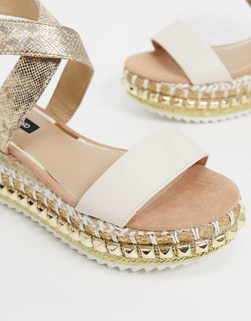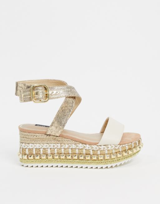 Sandalias Blancas Con Plataforma Plana De Esparto Y Detalle De Tachuelas De River Island Asos